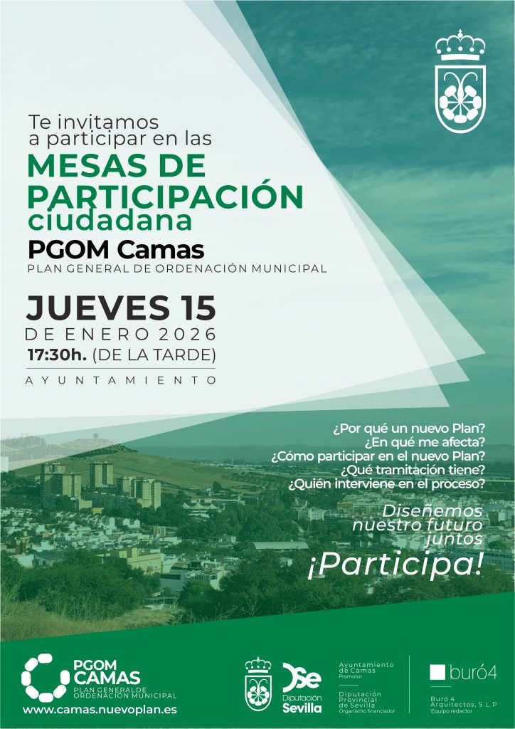 El Ayuntamiento de Camas inicia el proceso de participación ciudadana del nuevo Plan General de Ordenación Municipal (PGOM), un documento clave que definirá cómo será el desarrollo urbano, social y ambiental del municipio en los próximos años.
